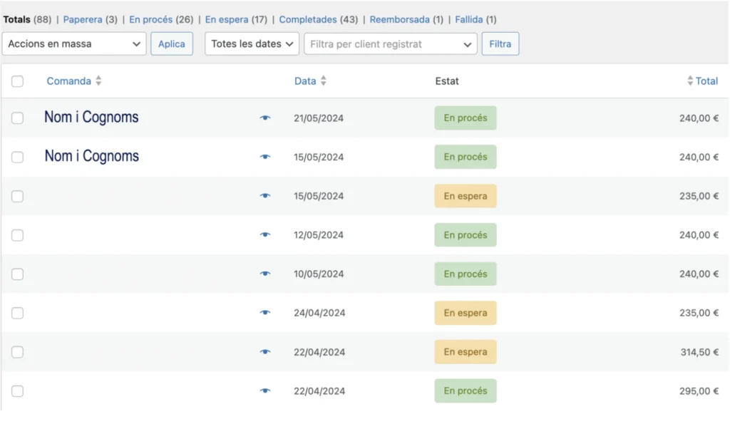 Realització de les inscripcions en format de compra centrades en els objectius del pagament i la recepció de totes les dades mitjançant un formulari.